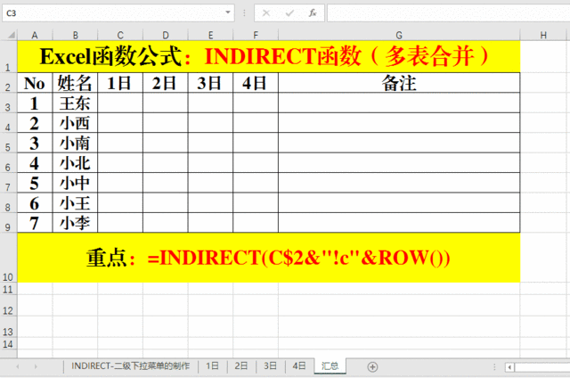 目的:对1日、2日、3日、4日的数据进行汇总。
